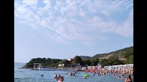 Большой Утриш 18 августа. Пляж полон людей, вода чистая.