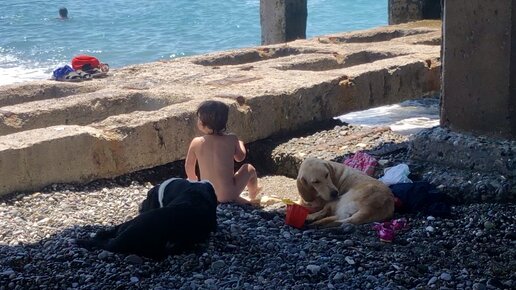 Наблюдала возле моря, как собаки оберегали ребёнка, оставленного на берегу и лаяли на коров!