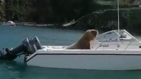 Посмотрите, как морж «угнал» лодку и путешествует по европейскому побережью