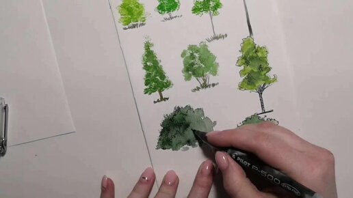 Показываю несколько простых способов нарисовать деревья🌸 Рисуем вместе🥰