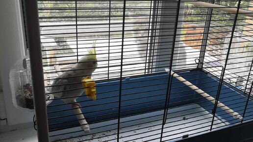 Уличный кот Дымок впервые увидел попугайчика кореллу Стасика. Интересно, они подружатся?