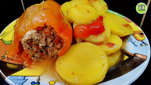 Мамин рецепт: фаршированный перец (с пшеном) и гарнир в одной кастрюле.