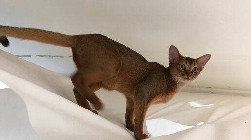 Прощай старый потолок! Абиссинская кошечка беспардонно гуляет по натяжному потолку (Часть 3).