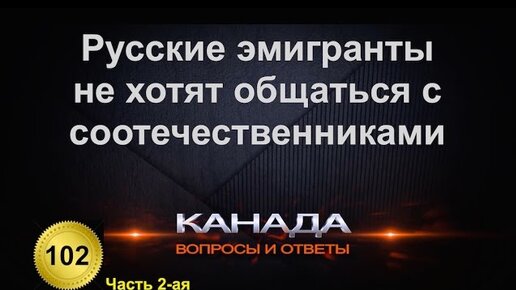 102. Почему эмигранты не хотят общаться с соотечественниками? Часть 2-ая. Канада.