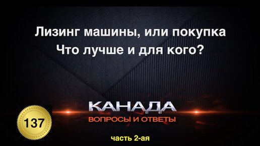 137 Лизинг машины, или покупка? Часть 2-ая. Что лучше, и для кого? Канада. Иммиграция.