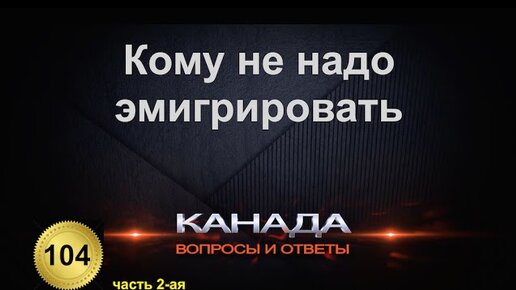 104. Кому не надо эмигрировать. Часть 2-ая. Канада. Вопросы и ответы.
