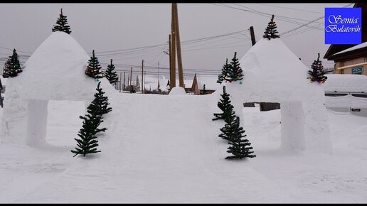 Построили классную горку из снега своими руками