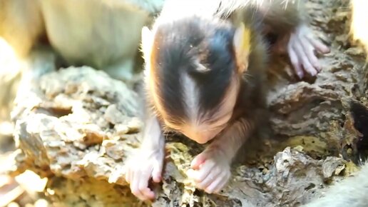Недавно рождённый малыш макаки ещё слабый