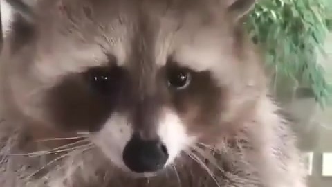 Енот не хочет делиться виноградом.