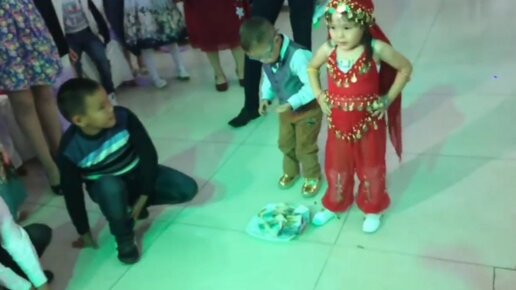 Девочек 3 годика, а танцует как Жади!! Все начали деньги бросить)