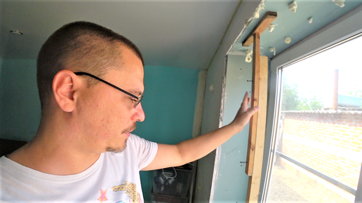 Далее: Наконец-то откос стал идеальным. Выводим углы и штукатурим.