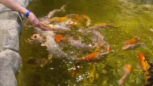 Кормление японских карпов в Музее мирового океана (Светлогорск)
