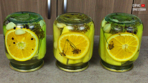 У меня ни один кабачок не пропадает: заготавливаю на зиму маринованные кабачки с апельсином, а банки храню в шкафу