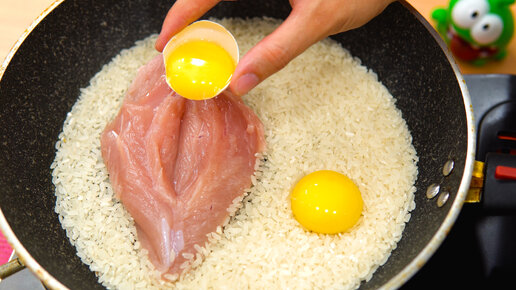 Смешиваю рис с желтками и сметаной, добавляю обжаренное куриное филе и отправляю в духовку
