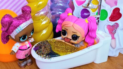 ЭТО МОЯ КОСМЕТИКА! Волшебная ванна со слаймами и косметикой для куклы Лол сюрприз Даринелка