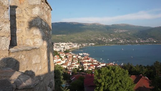 Вид из старой крепости Македонии на территорию Албании за озером.