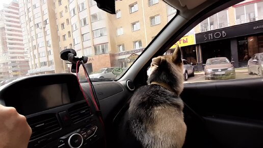 Щен Дар в машине. И чего он видит в окне