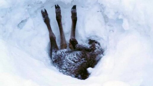 Из сугроба торчали лишь лапы. Водитель остановил машину и начал копать