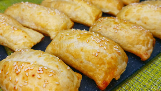 Нежные слойки с сыром и ветчиной.