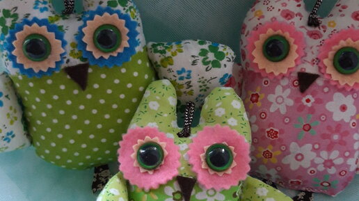 Совушка-брелок из лоскутков ткани
