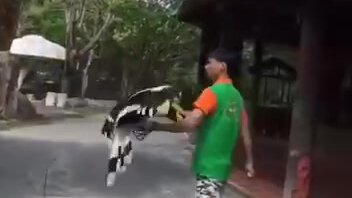 Дрессированная птица-носорог