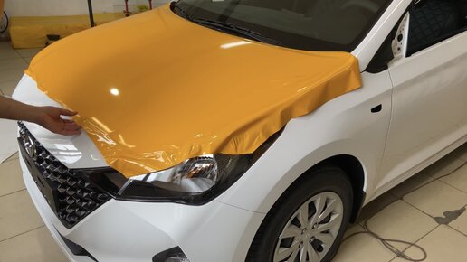 Мастера покажут процесс оклейки капота авто под такси в желтый цвет