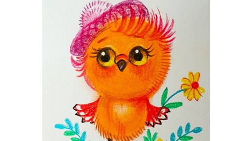 🐤Оранжевый цыпленок в берете🐥рисунок сухой пастелью.