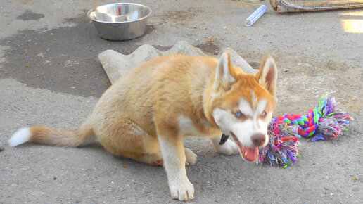 Щенок хаски ни минутки не сидит на месте
