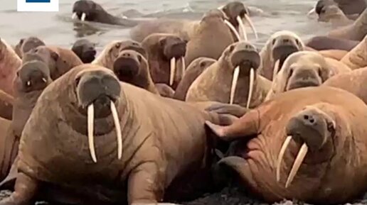 На море Лаптевых сняли кадры отдыхающих моржей