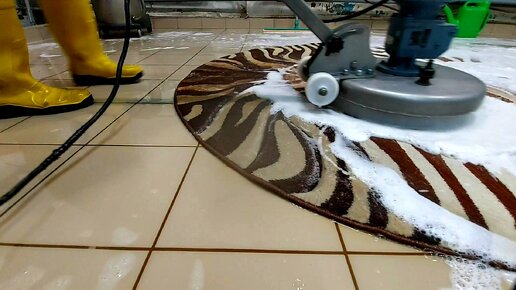 Пена разлетается по ковру с рельефным рисунком / Стирка ковров в Кемерово