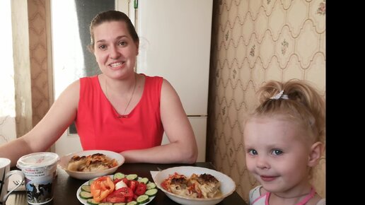 Мукбанг: Фетучини(гнезда) фаршированные индейкой//Свежие овощи с простоквашей//Ужин с дочкой