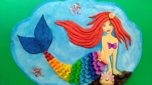 Радужная русалка из пластилина. Объёмная аппликация русалочка.
