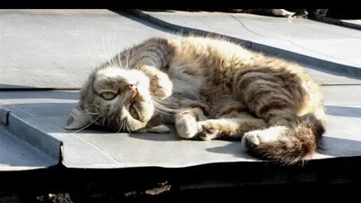 На крыше лежал кот,над ним хищно кружила стая ворон.Кот был приклеен и вороны беспощадно клевали его
