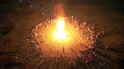 Праздник Перуна. Большой костер на берегу реки. Окунево.