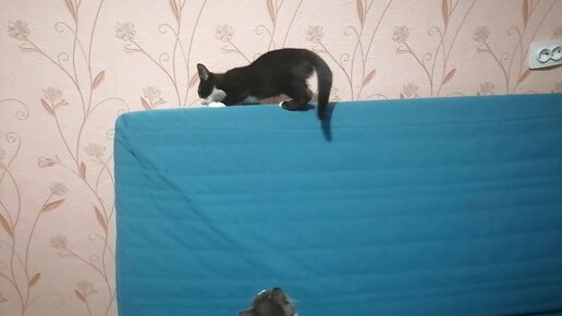 Мама и сын играют в догонялки. Когда котята подрастают можно с ними и поиграть.