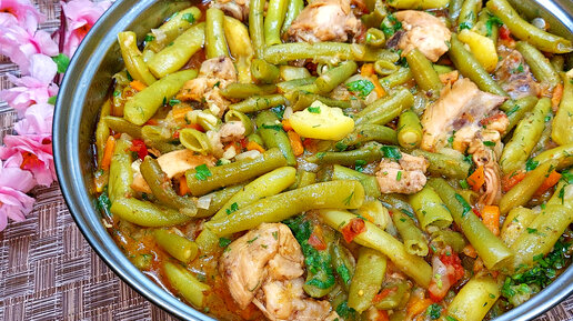Вкусный ужин из зеленой фасоли с мясом из доступных продуктов .