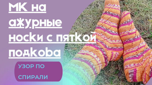 Подробный МК на носки с французской пяткой или пяткой подкова. Ажурный узор, ленточное закрытие мыска!