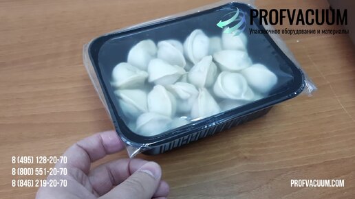 Упаковка пельменей 500 гр в лоток 187х137х63 на ручном запайщике лотков (трейсилере), пленка PET/CPP
