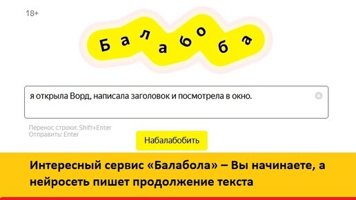 Интересный сервис «Балабола» – Вы начинаете, а нейросеть пишет продолжение текста