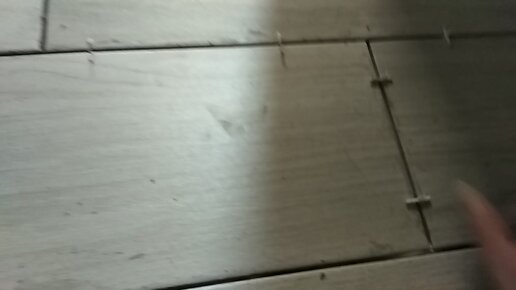 Уложила плитку на пол. Очищаю швы под затирку. Показываю