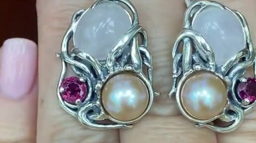 РОЗОВЫЙ КВАРЦ С НАТУРАЛЬНЫМ ЖЕМЧУГОМ. Комплект Суматра.