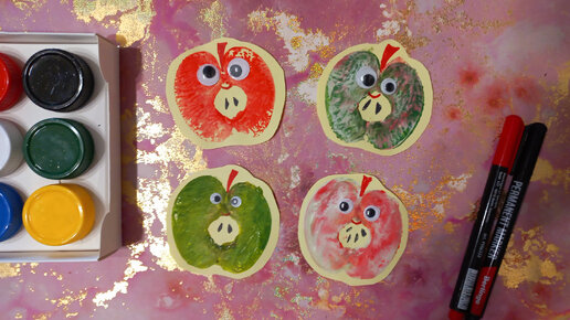 Рисуем яблоком мини-открытки 🍎
