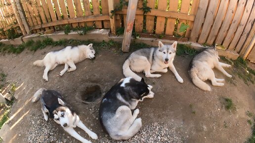 Так, я не понял, а почему это индейцы спят, а не работают? Солнце ещё высоко! Очень ленивая стая хаски.