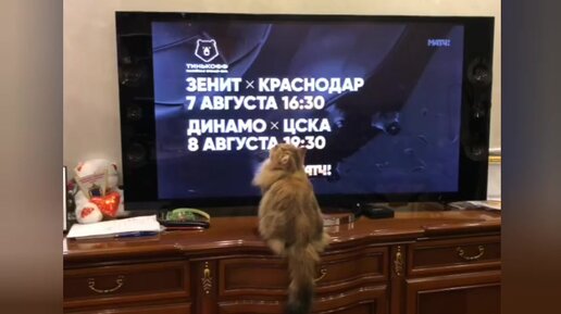 На видео кошка, по кличке Уся, смотрит ТВ