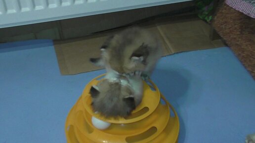 Котятам 4 недели (1 месяц). Они во всю уже играют в манеже.