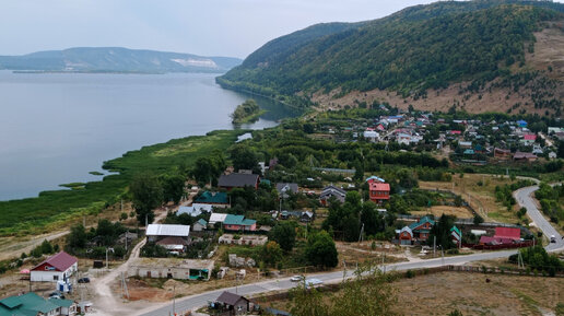 Россия: панорамный вид с Жигулевских гор на волжское село Ширяево