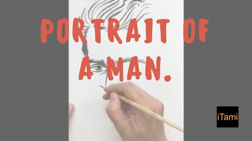 Portrait of a man. Black-white graphic ink drawing on paper.