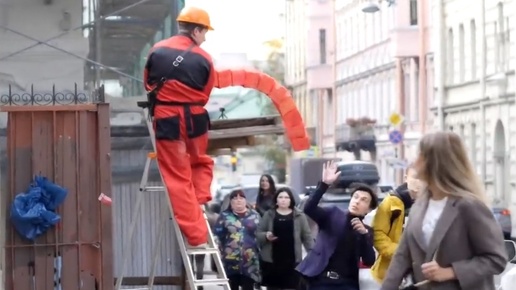 Строитель нечаянно уронил кирпичи. Реакция прохожих.