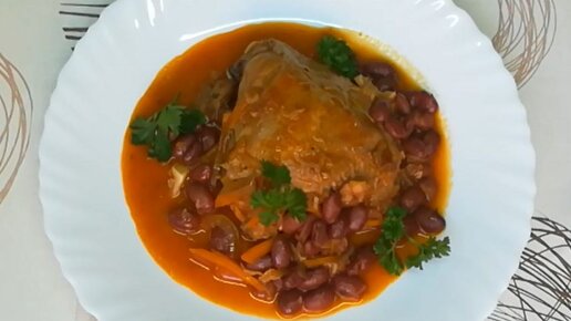 И снова окорочок. На этот раз тушеный с фасолью