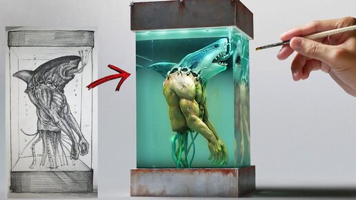 Как сделать диораму человека-акулы безумного ученого / полимерная глина / эпоксидная смола